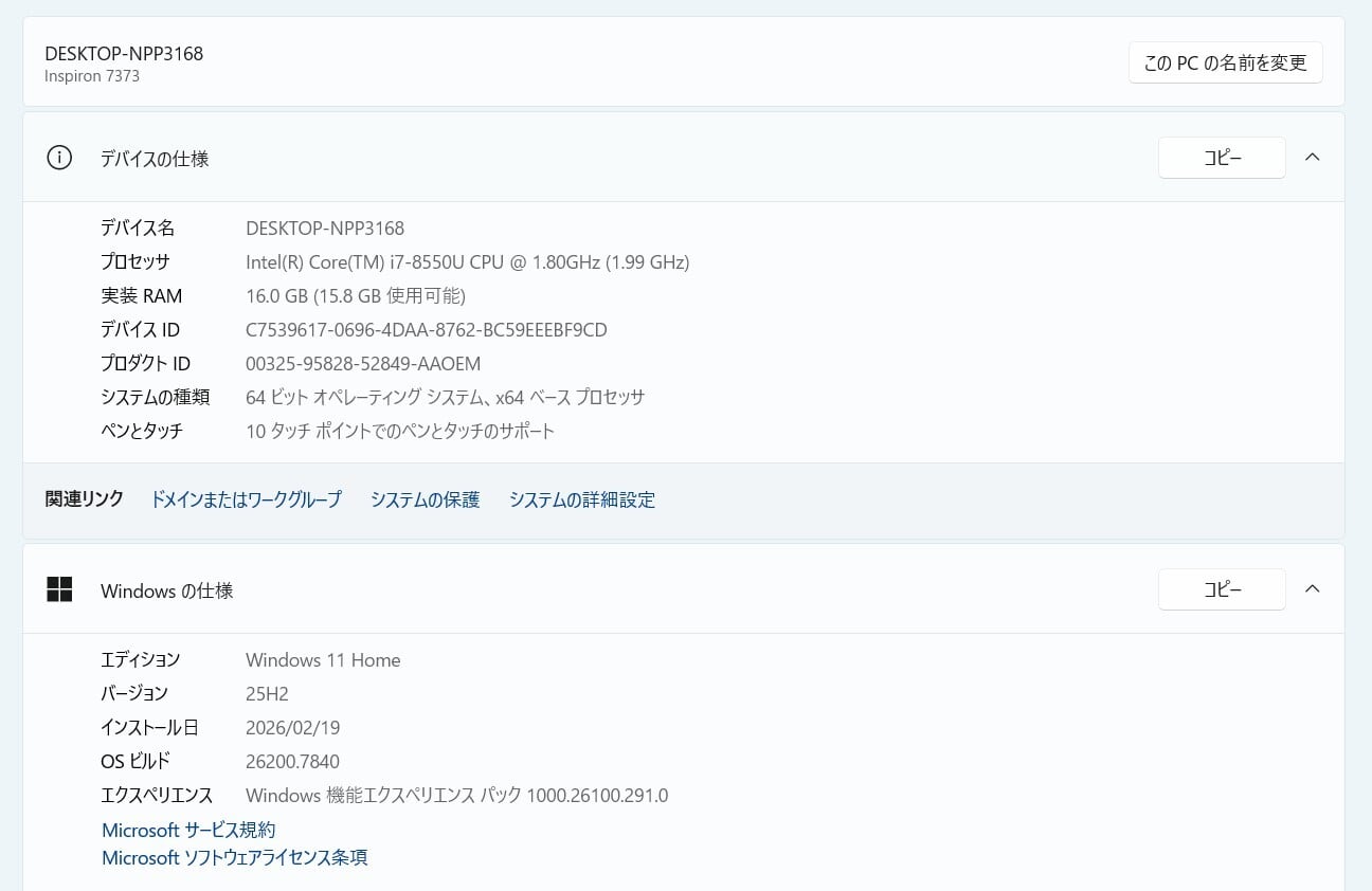 ・OS:Windows11 Home/25H2(ライセンス認証・Windows update済)