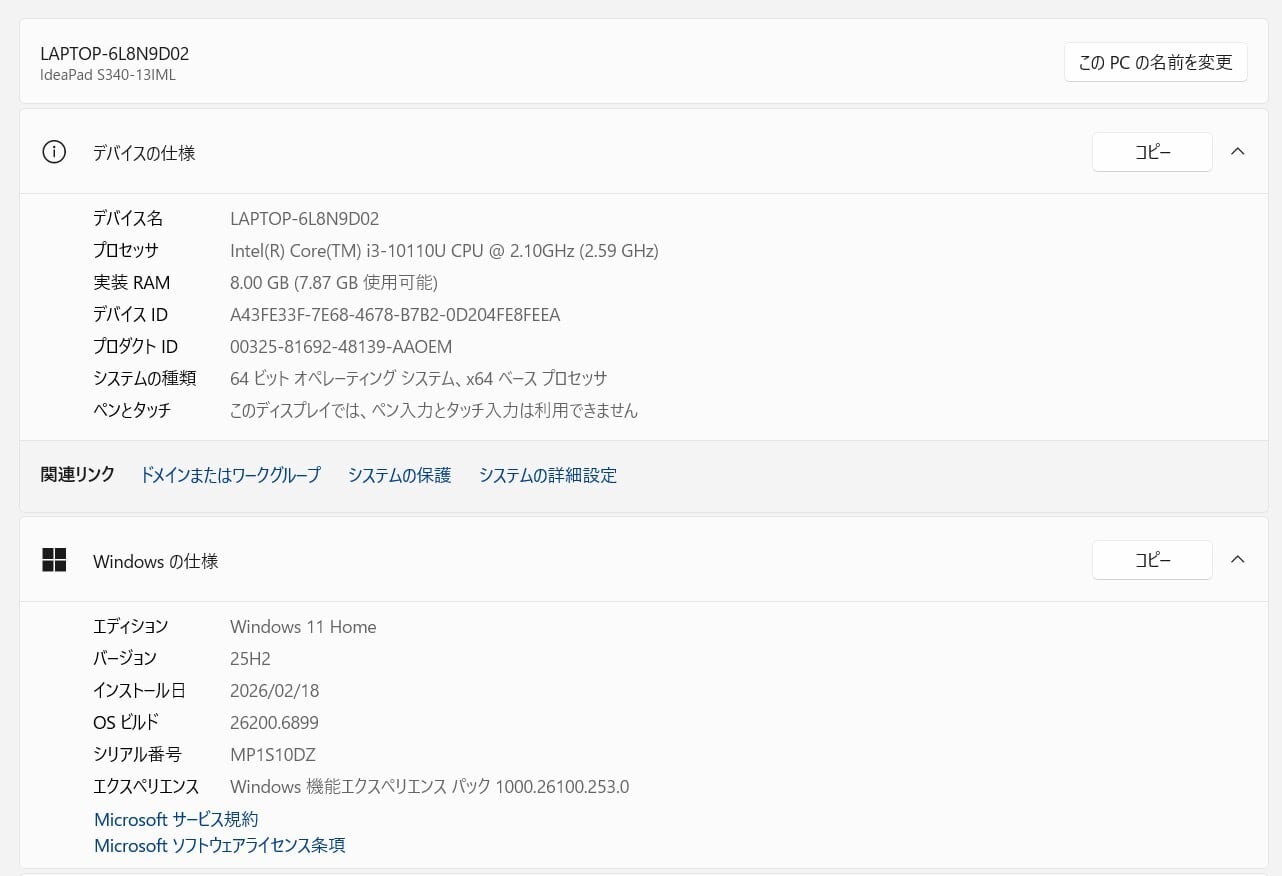 ・OS:Windows11 Home/25H2(ライセンス認証・Windows update済)