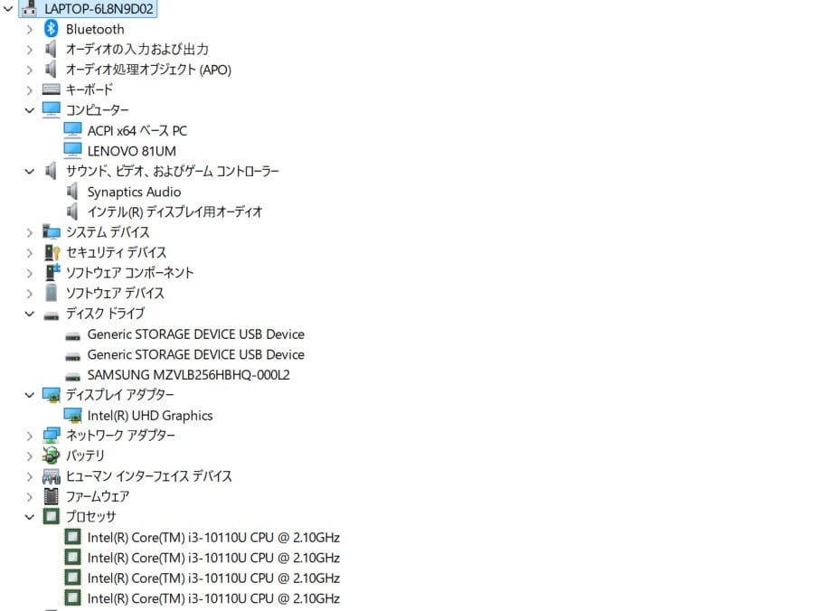 ・CPU:Intel Core i3-10110U 2.10GHz(2.59GHz)