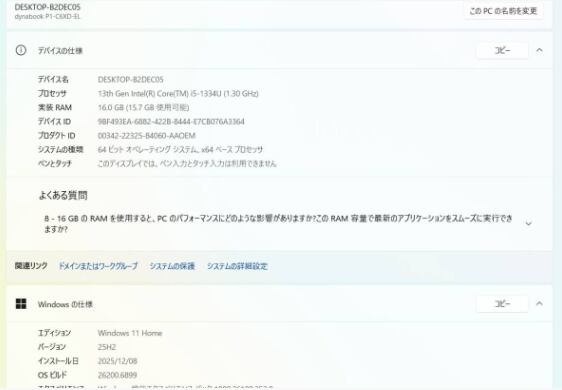 ・OS:Windows11 Home/25H2(ライセンス認証・Windows update済)