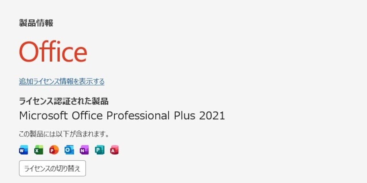 ・Office Professional Plus 2021 ライセンス認証済み(プロダクトキーなどは付属しません)