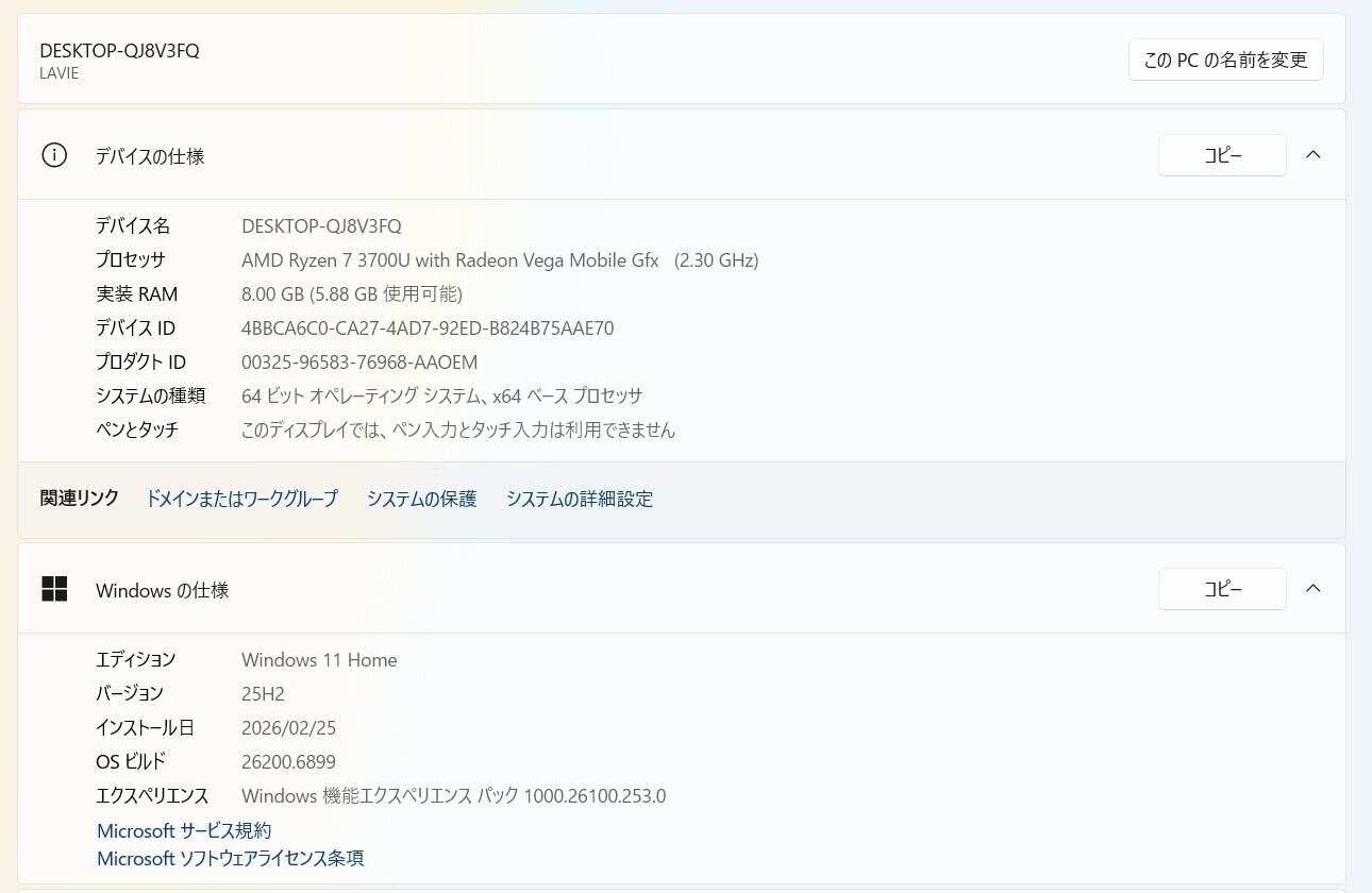 ・OS:Windows11 Home/25H2(ライセンス認証・Windows update済)