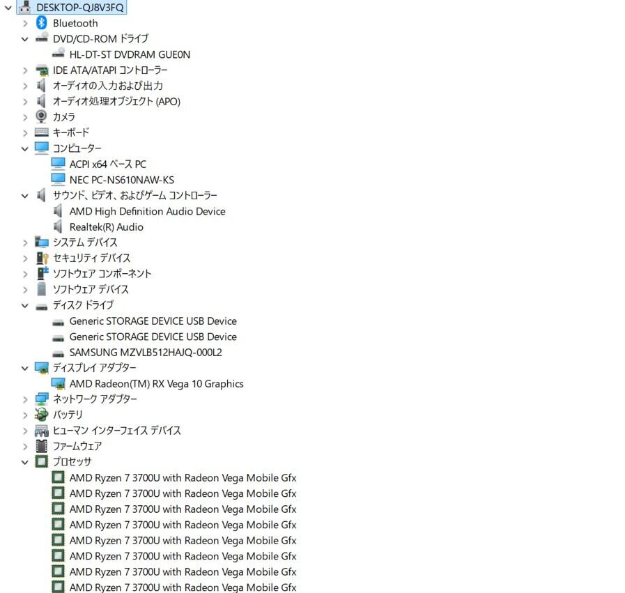 ・CPU:AMD Ryzen7 3700U (2.30GHz)