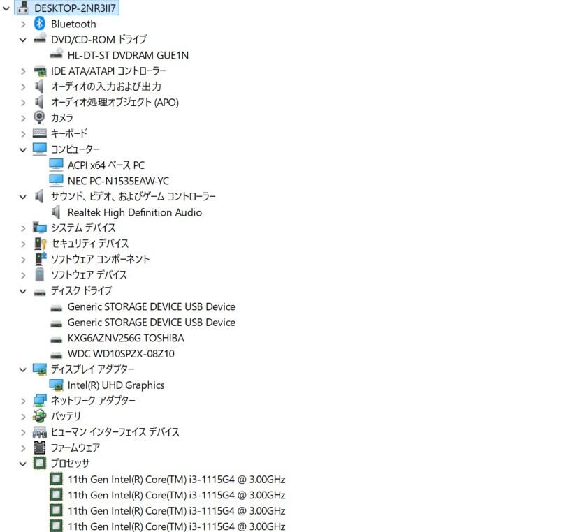 ・CPU:Intel Core i3-1115G4 3.00GHz(3.00GHz)