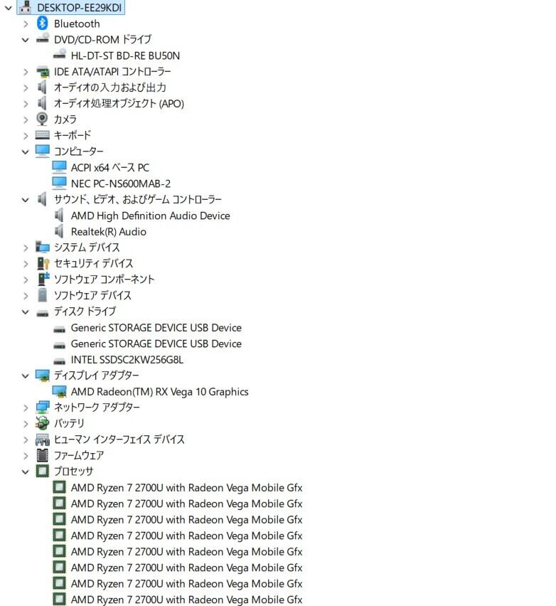 ・CPU:AMD Ryzen7 2700U (2.20GHz)