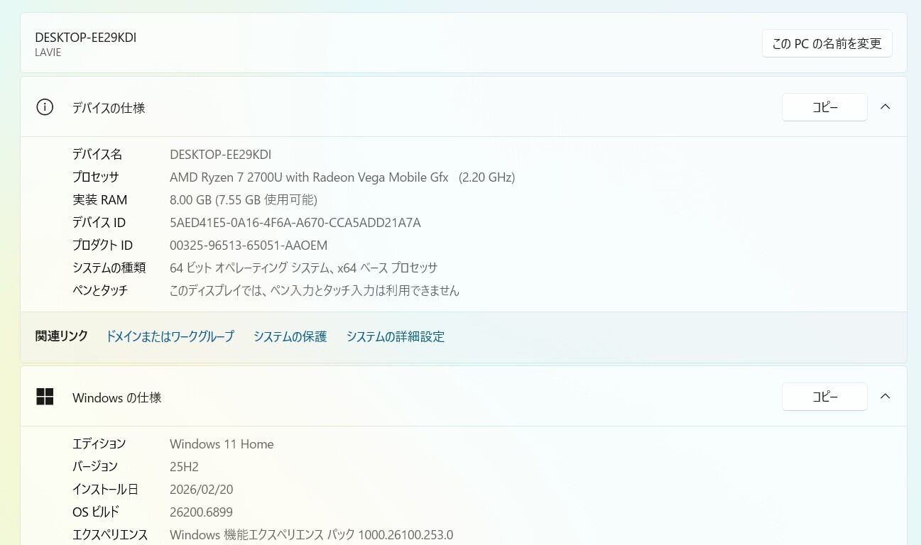 ・OS:Windows11 Home/25H2(ライセンス認証・Windows update済)
