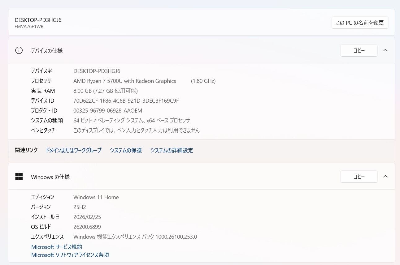 ・OS:Windows11 Home/25H2(ライセンス認証・Windows update済)