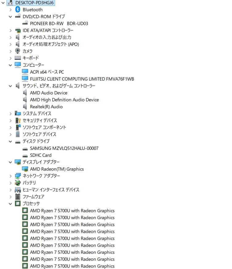 ・CPU:AMD Ryzen7 5700U (1.80GHz)
