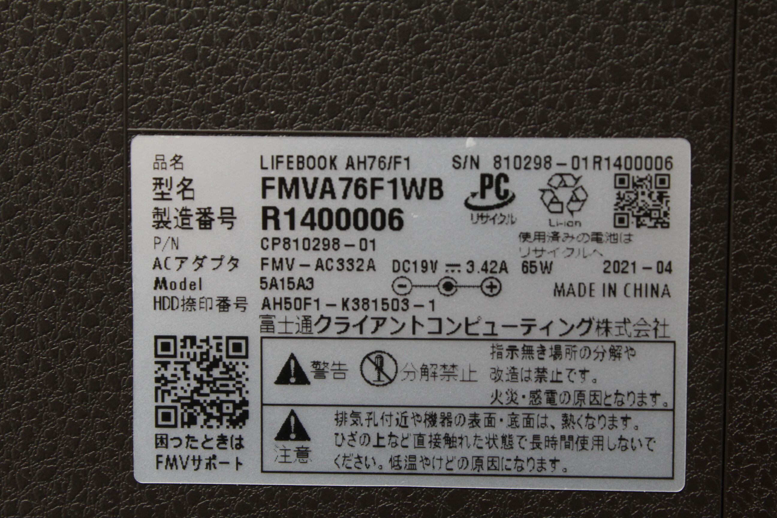 【中古ノートPC】富士通〈LIFEBOOK AH76/F1〉Ryzen 7/SSD512GB/メモリ8GB ⑤