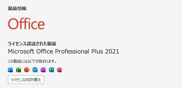 ・Office Professional Plus 2021 ライセンス認証済み(プロダクトキーなどは付属しません)