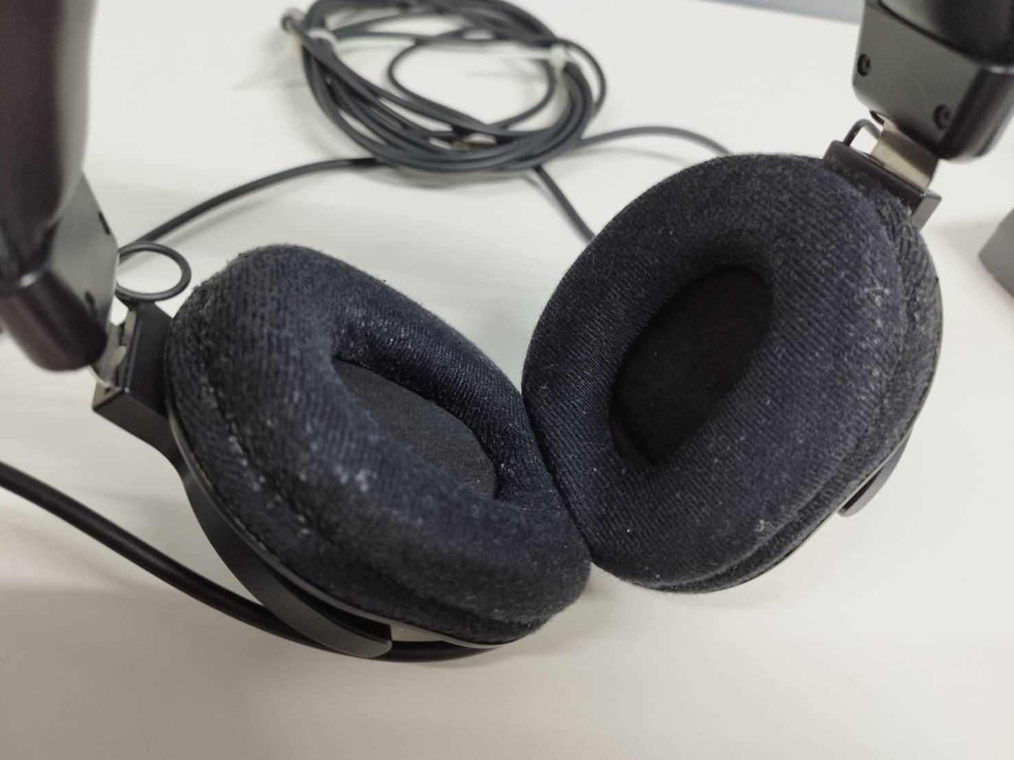 イヤーパッドは両方とも表面生地がほとんどとれており、中綿みえている状態です。