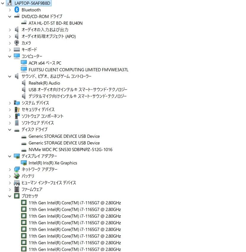 ・CPU:Intel Core i7-1165G7 2.80GHz(2.80GHz)