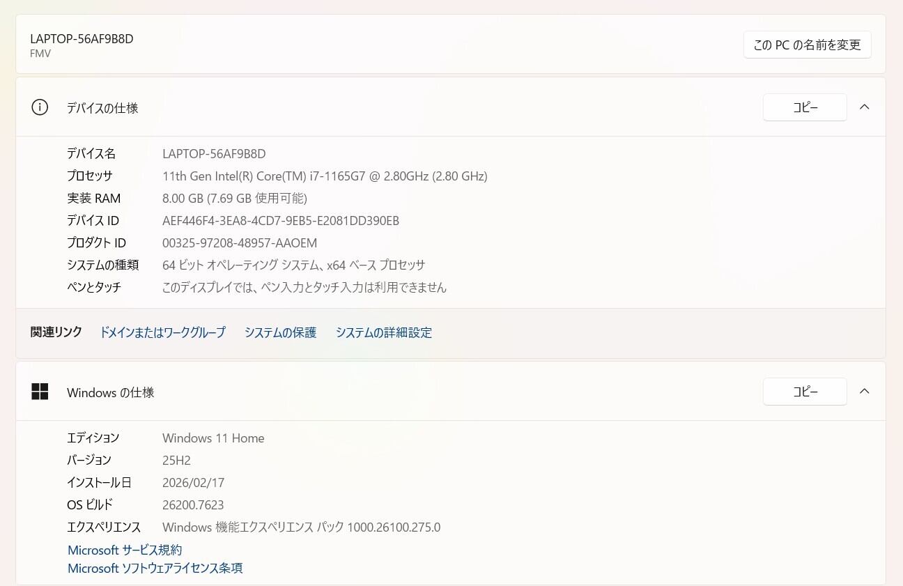 ・OS:Windows11 Home/25H2(ライセンス認証・Windows update済)