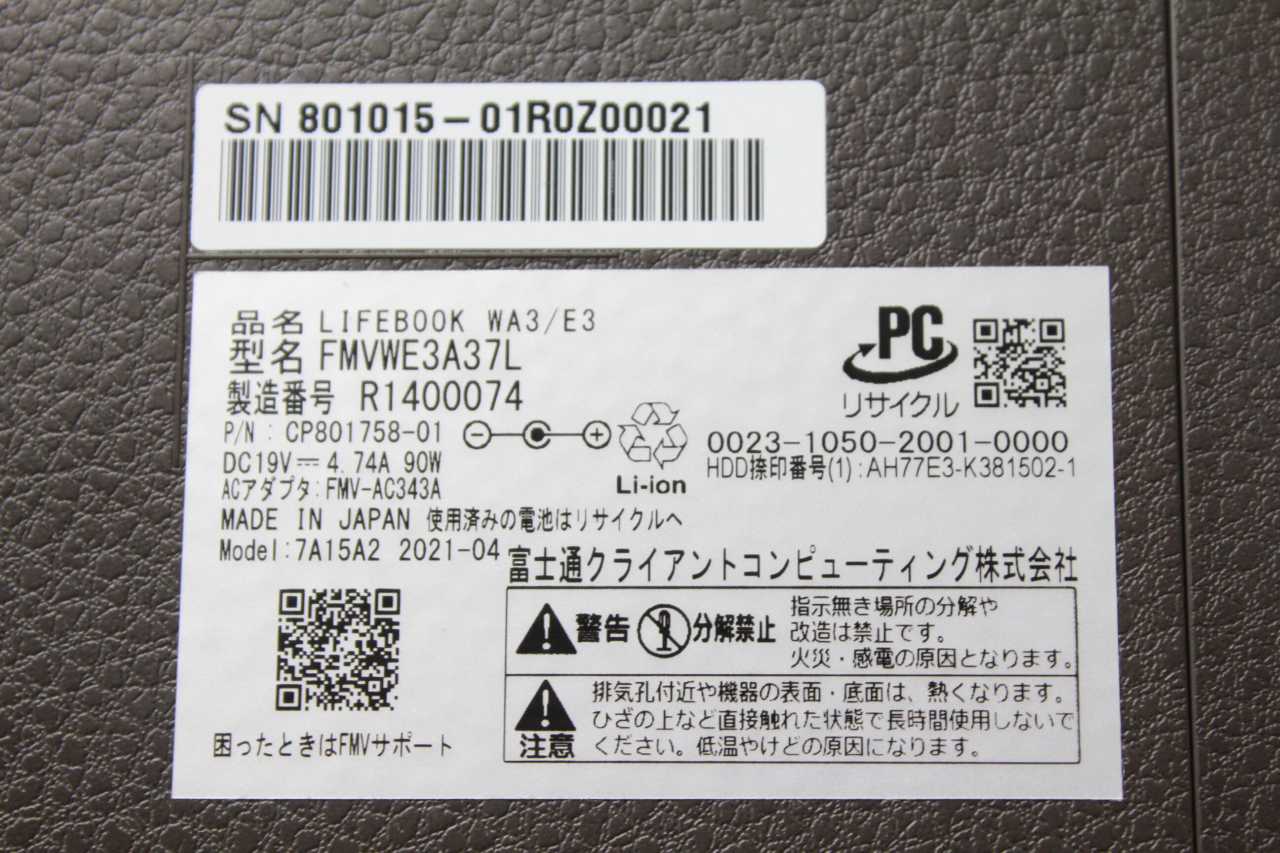 ・型番:FMVWE3A37L