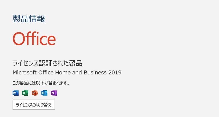 ・Office Home and Business 2019 ライセンス認証済み(プロダクトキーなどは付属しません)