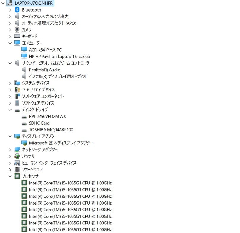 ・CPU:Intel Core i5-1035G1 1.00GHz(1.19GHz)