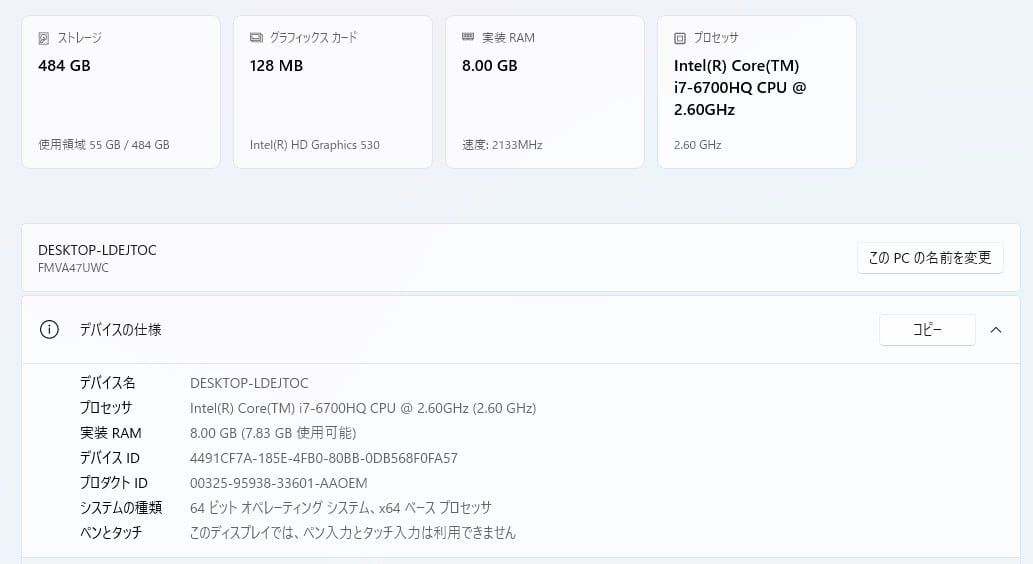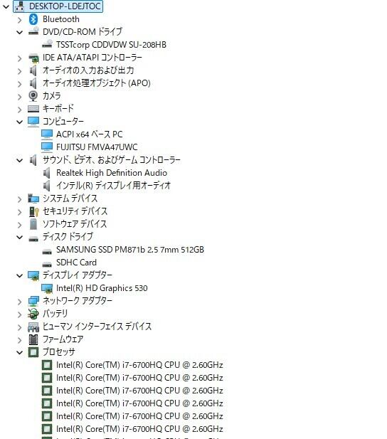 ・CPU:Intel Core i7-6700HQ 2.60GHz(2.60GHz)