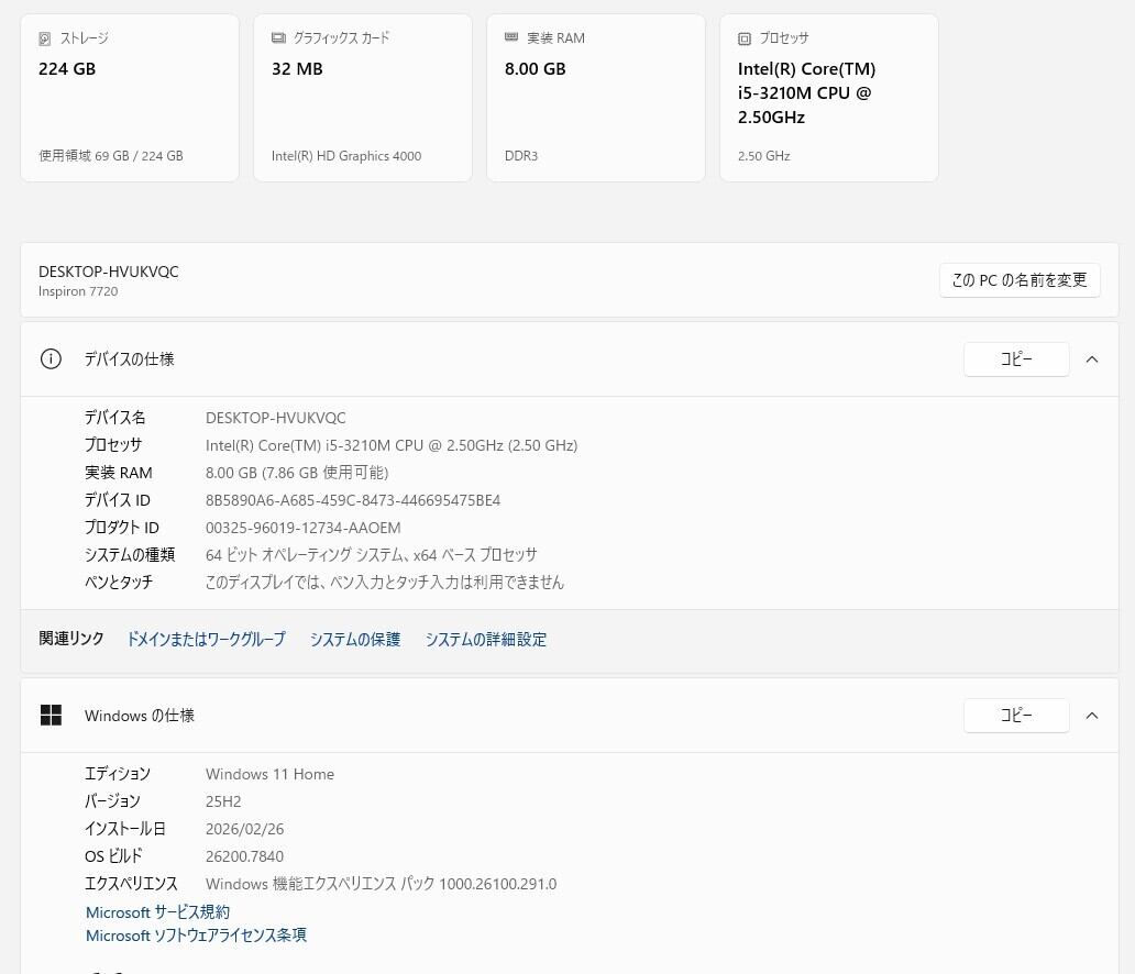 ・OS:Windows11 Home/25H2(ライセンス認証・Windows update済)