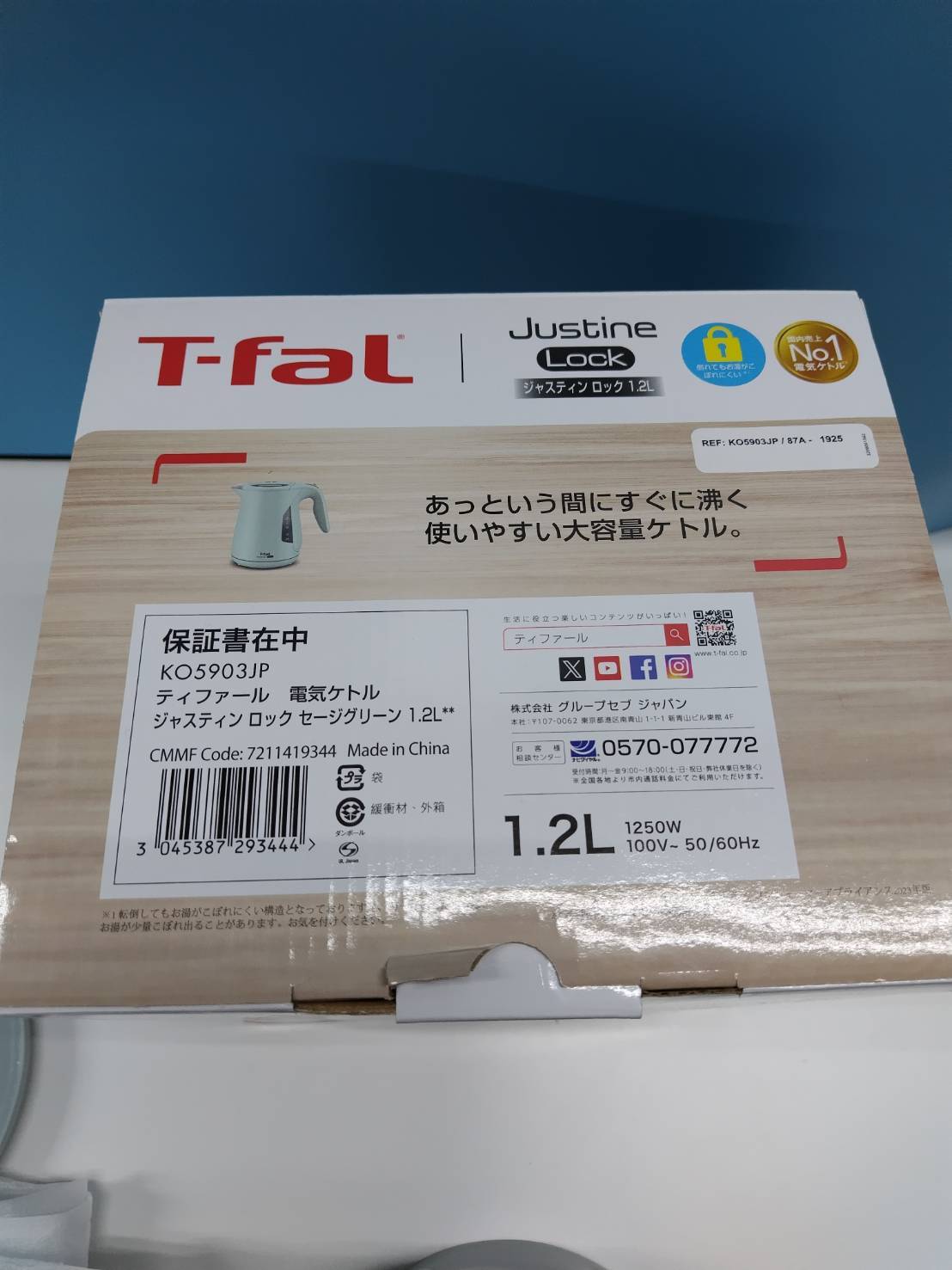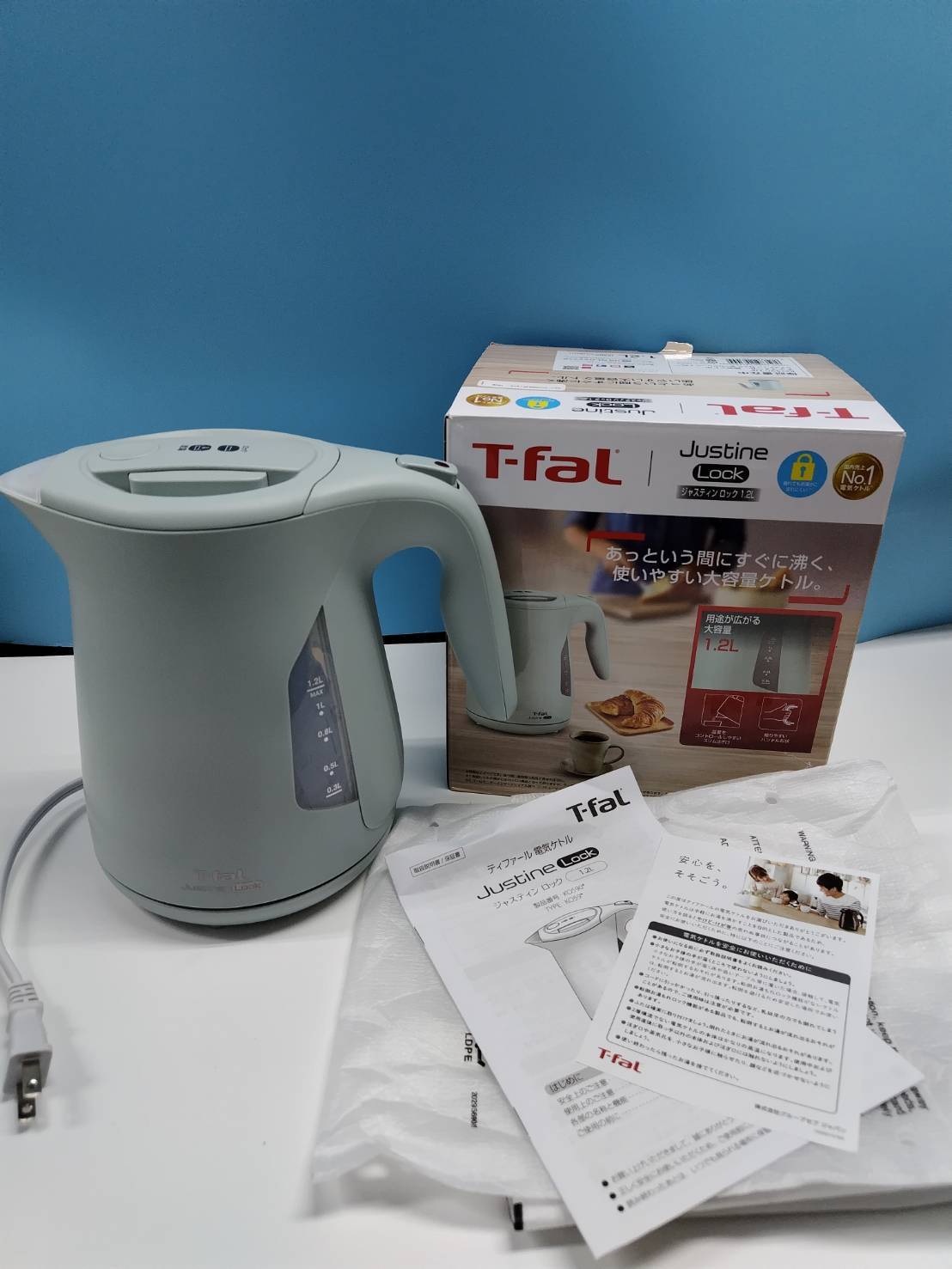 【未使用に近い】T-fal Justine Lock 1.2L/KO5903JP/ティファール電気ケトル/セージグリーン