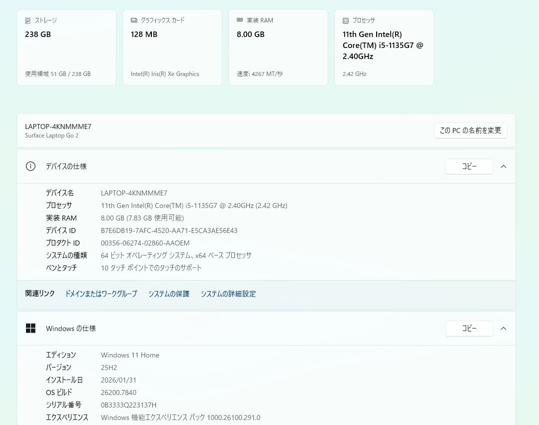 CPU:Intel Core i5 1135G7 2.40GHz(2.42GHz)