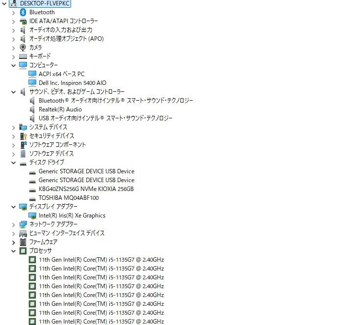 ・CPU:Intel Core i5-1135G7 2.40GHz(2.42GHz)