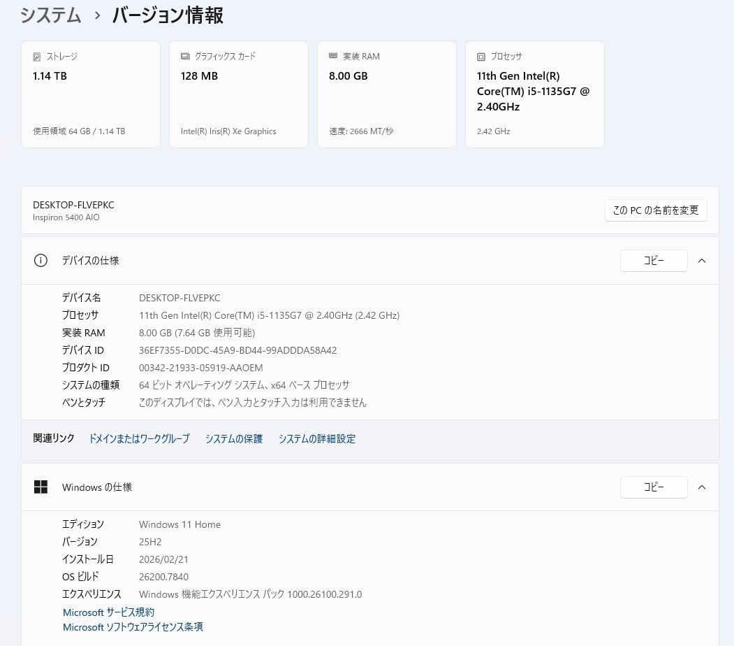 ・OS:Windows11 Home/25H2(ライセンス認証・Windows update済)