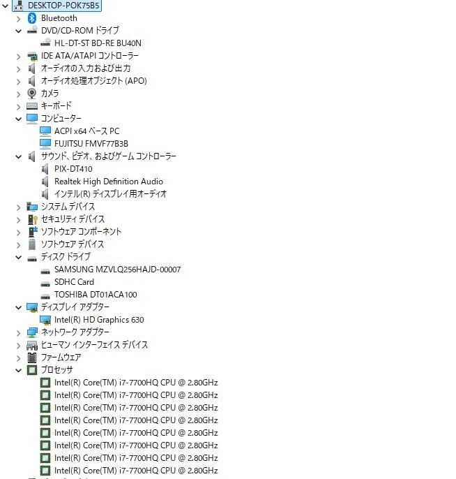 ・CPU:Intel Core i7-7700HQ 2.80GHz(2.81GHz)