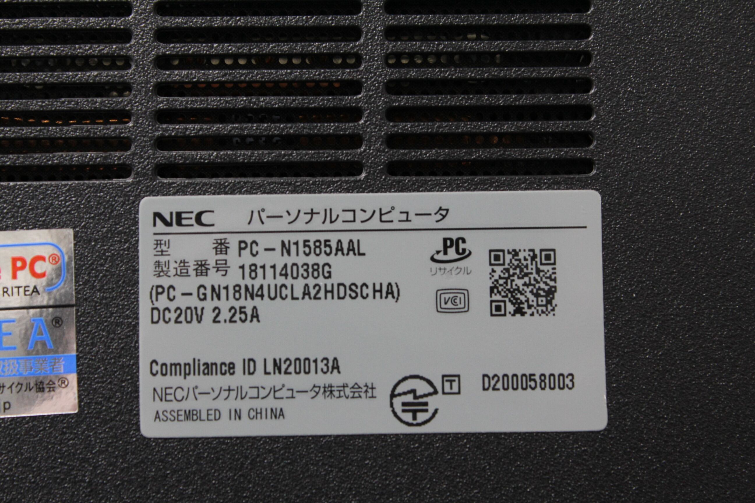 ・型番:PC-N1585AAL