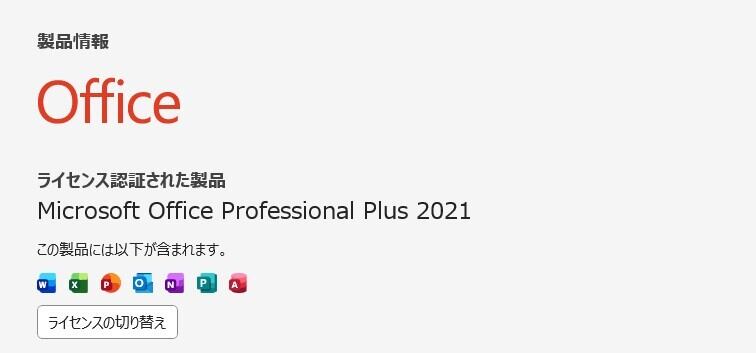 ・Office Professional Plus 2021 ライセンス認証済み(プロダクトキーなどは付属しません)