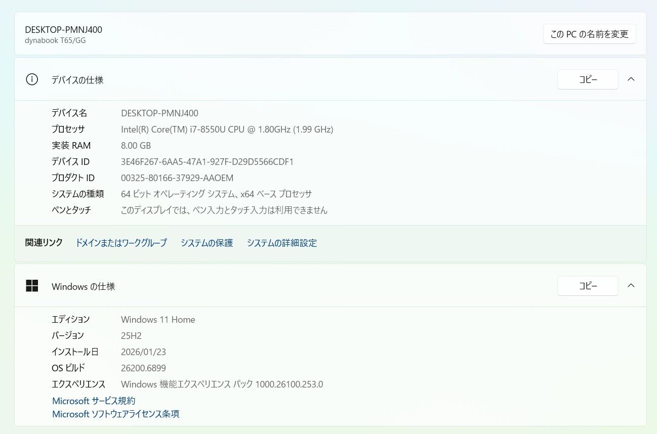 ・OS:Windows11 Home/25H2(ライセンス認証・Windows update済)
