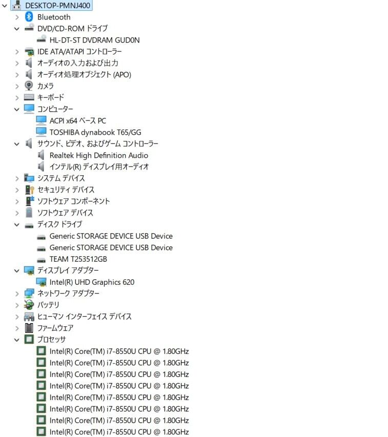 ・CPU:Intel Core i7-8550U 1.80GHz(1.99GHz)
