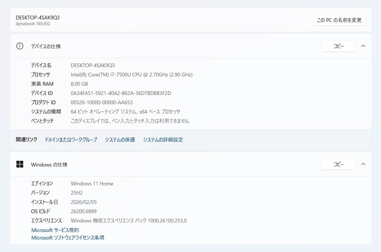 ・OS:Windows11 Home/25H2(ライセンス認証・Windows update済)