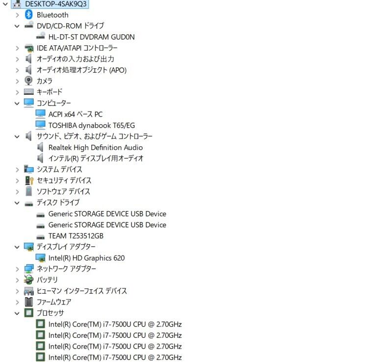 ・CPU:Intel Core i7-7500U 2.70GHz(2.90GHz)