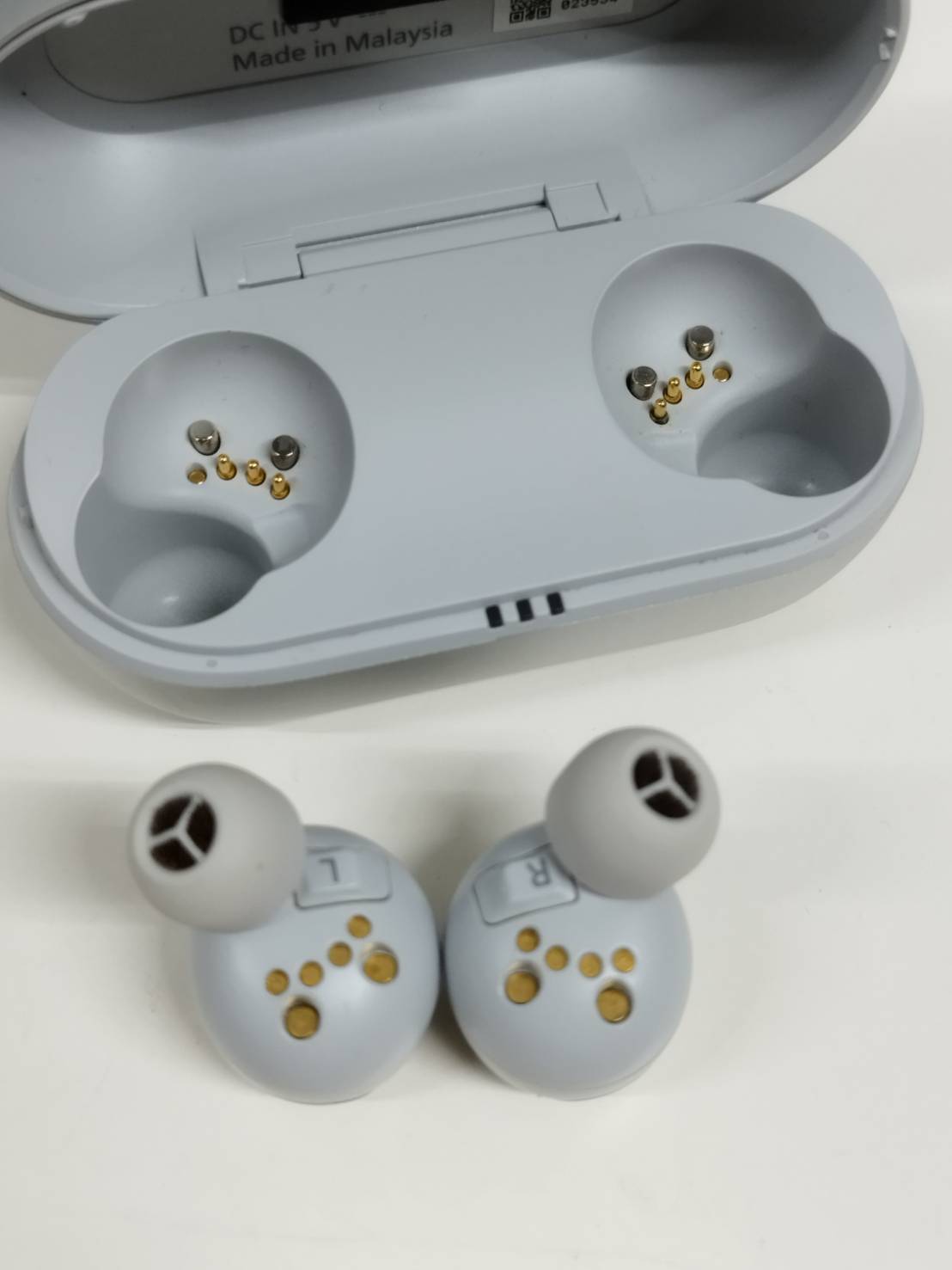右耳イヤホンの数ヶ所に小傷、充電ケースは数ヶ所に凹み傷があります。
