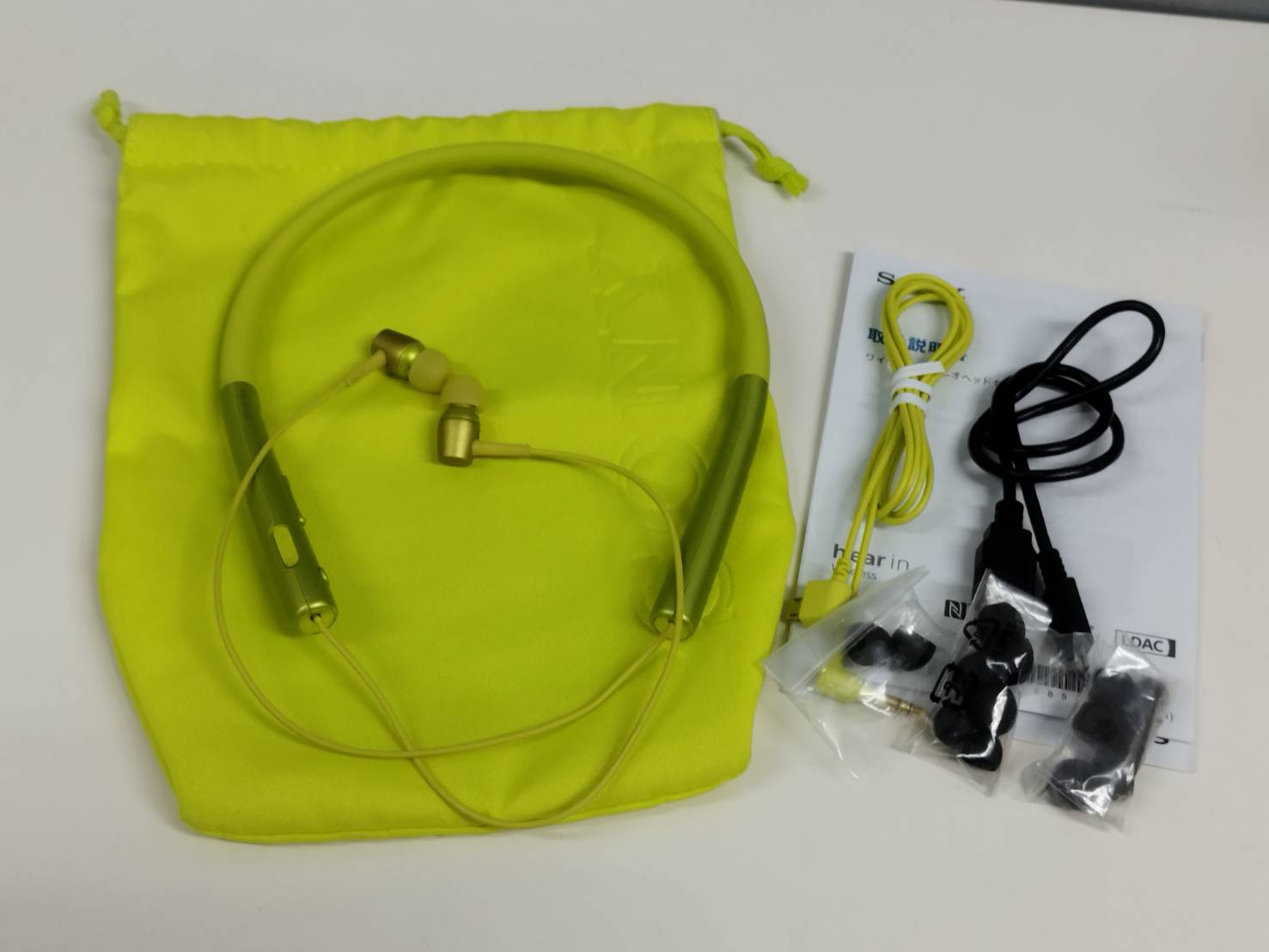 内容物:イヤホン、USBケーブル、イヤーピース、