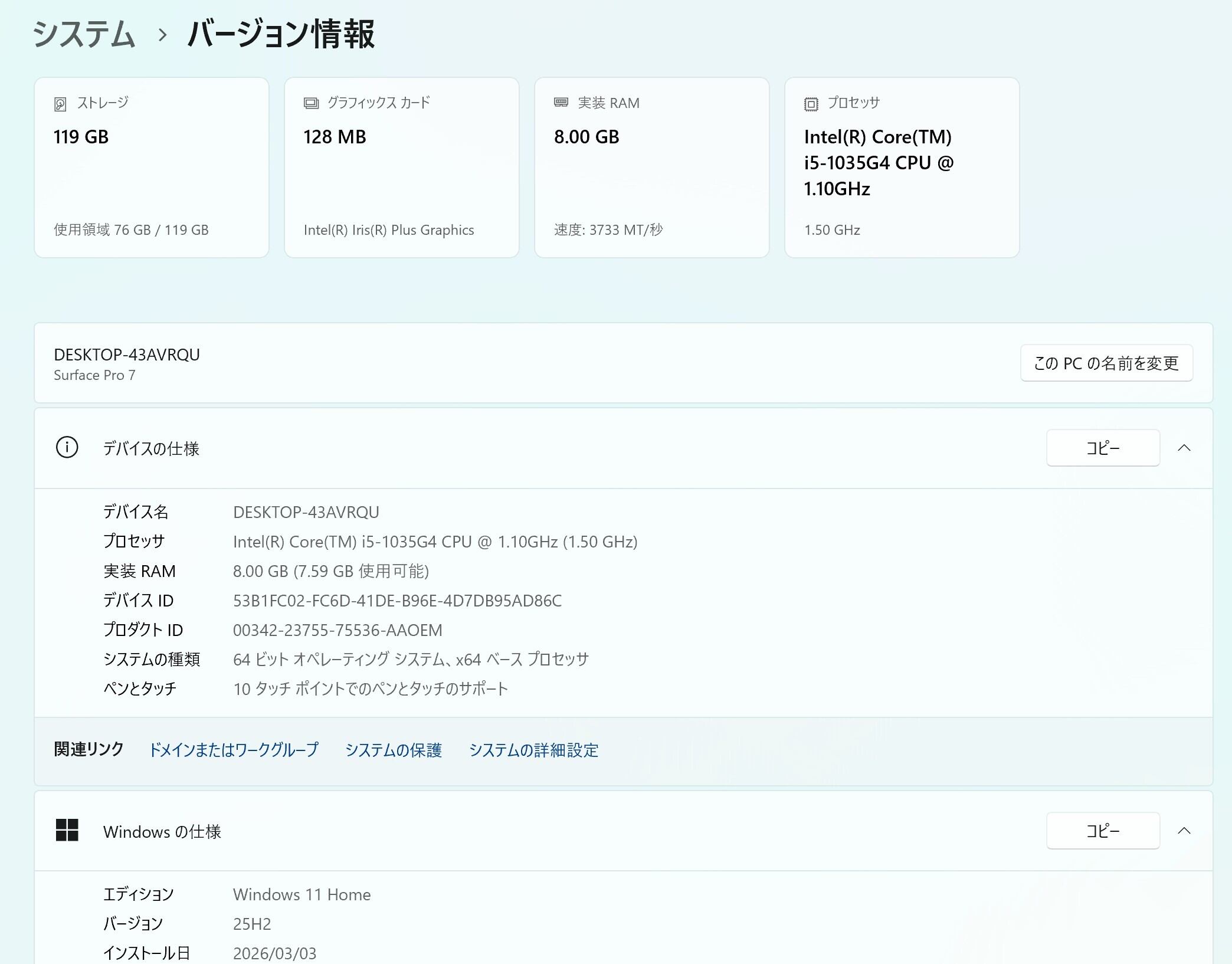 Surface Pro7/Intel Core i5/128GB/メモリ8GB ⑥