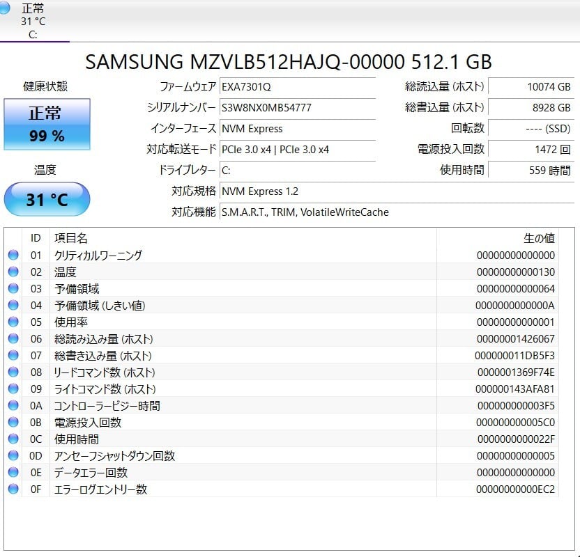 ストレージ:SSD 512GB