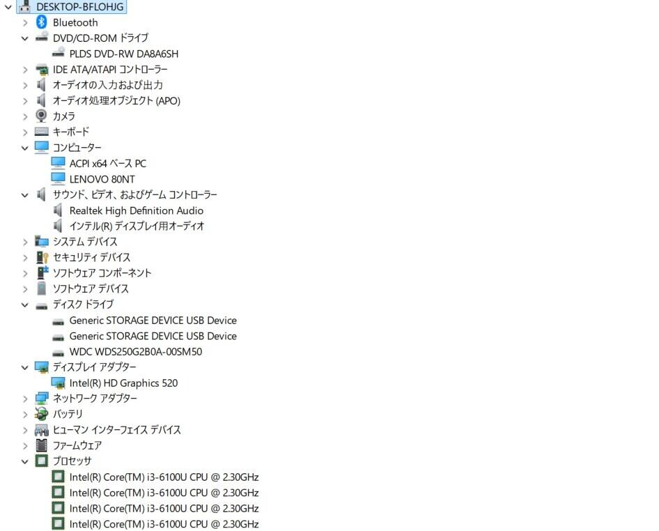 ・CPU:Intel Core i3-6100U 2.30GHz(2.30GHz)