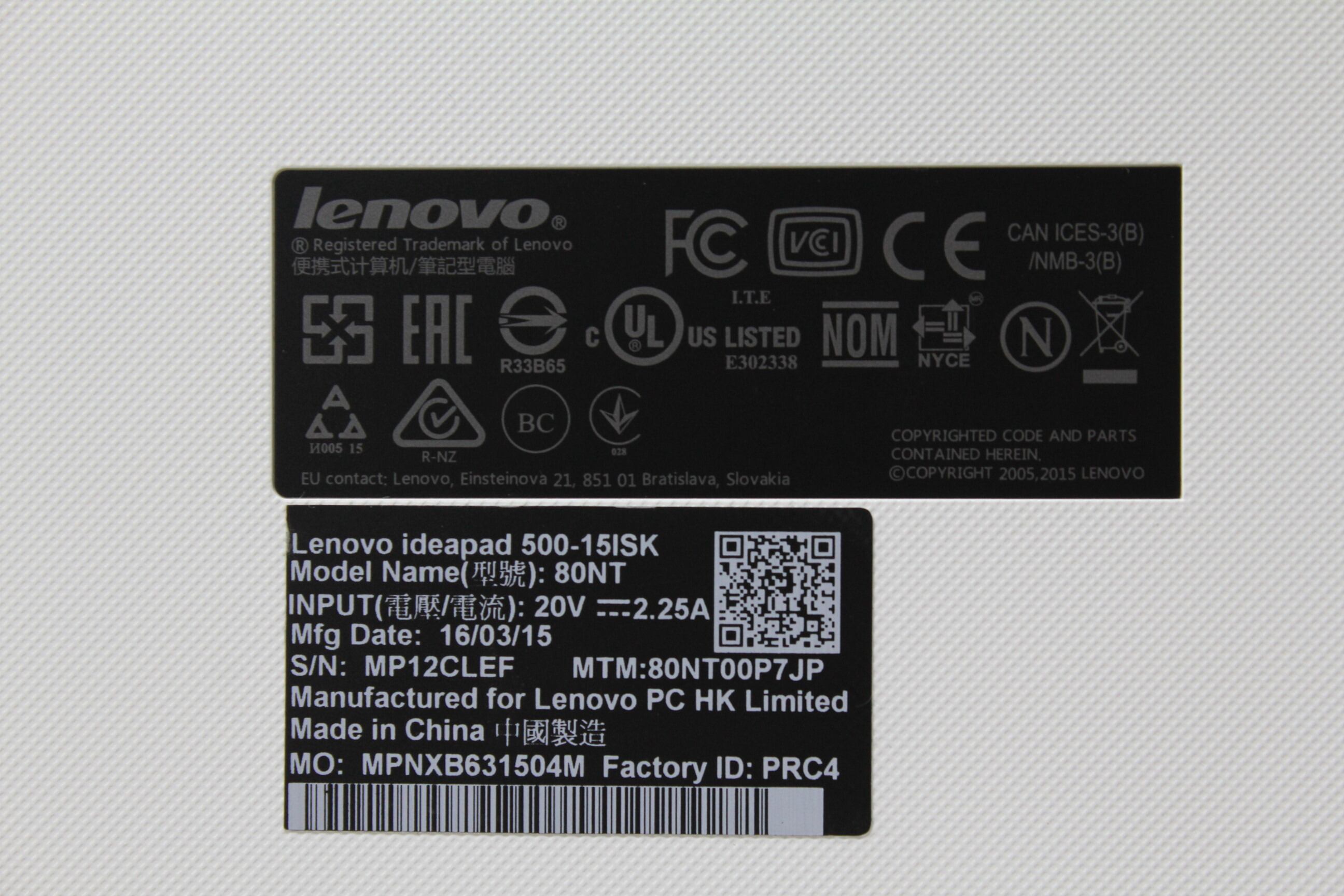 【中古ノートPC】Lenovo〈ideapad 500-15ISK〉Intel Coe i3/SSD250GB/メモリ8GB ⑥