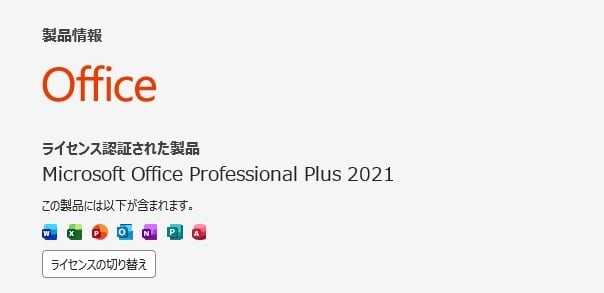 ・Office Professional Plus 2021 ライセンス認証済み(プロダクトキーなどは付属しません)