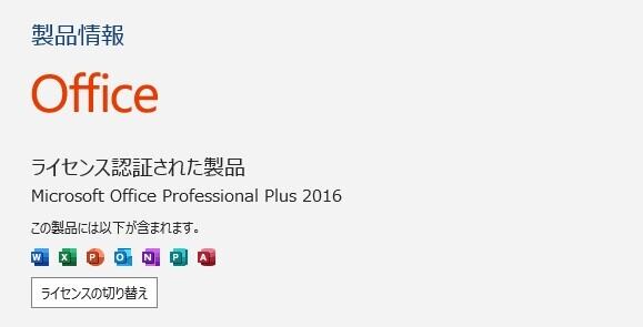 ・Office Professional Plus 2016 ライセンス認証済み(プロダクトキーなどは付属しません)