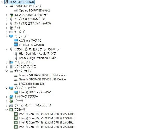 ・CPU:Intel Core i5-3210M 2.50GHz(2.50GHz)