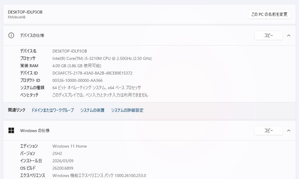 ・OS:Windows11 Home/25H2(ライセンス認証・Windows update済)