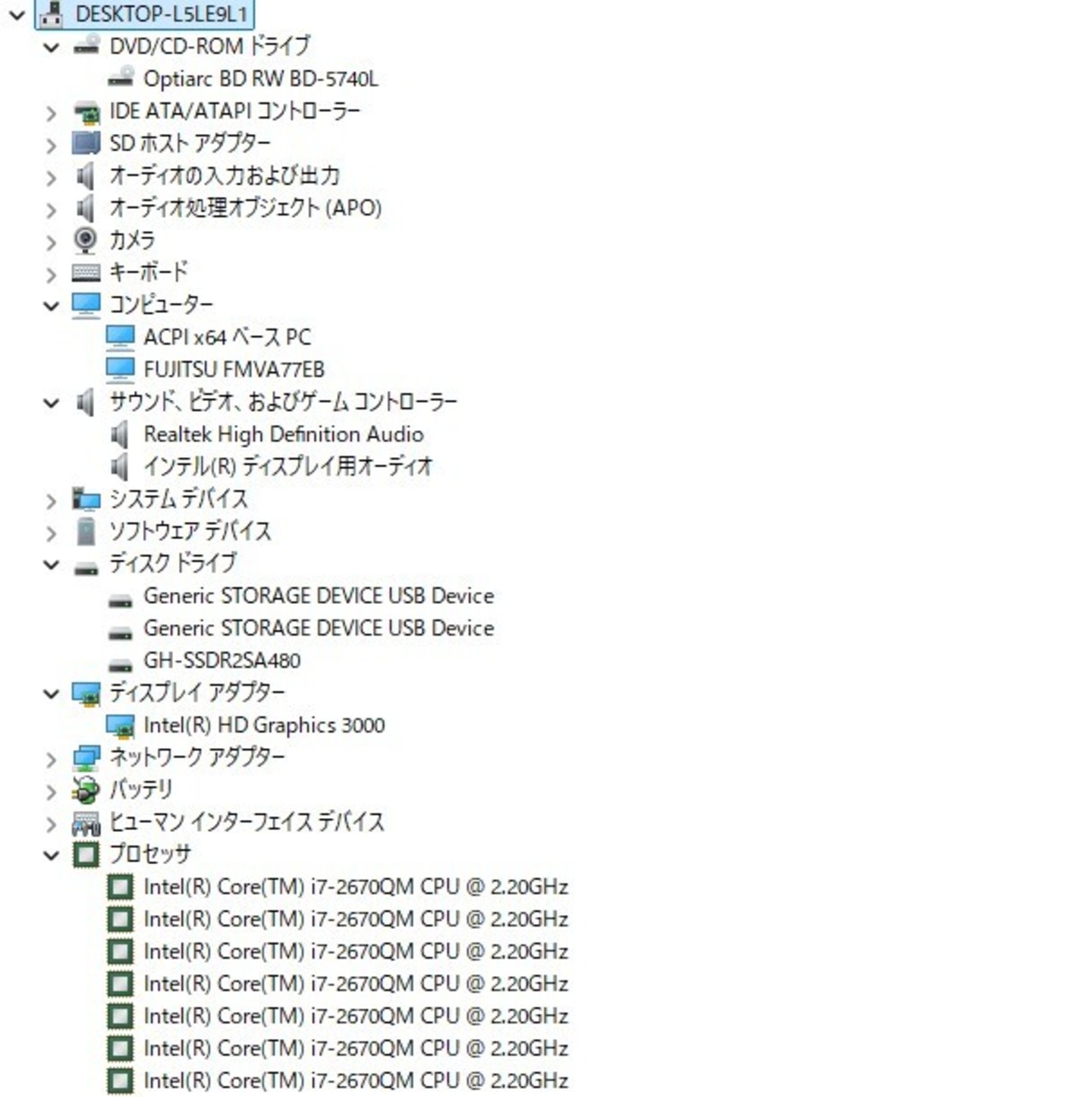 ・CPU:Intel Core i7-2670QM 2.20GHz(2.20GHz)