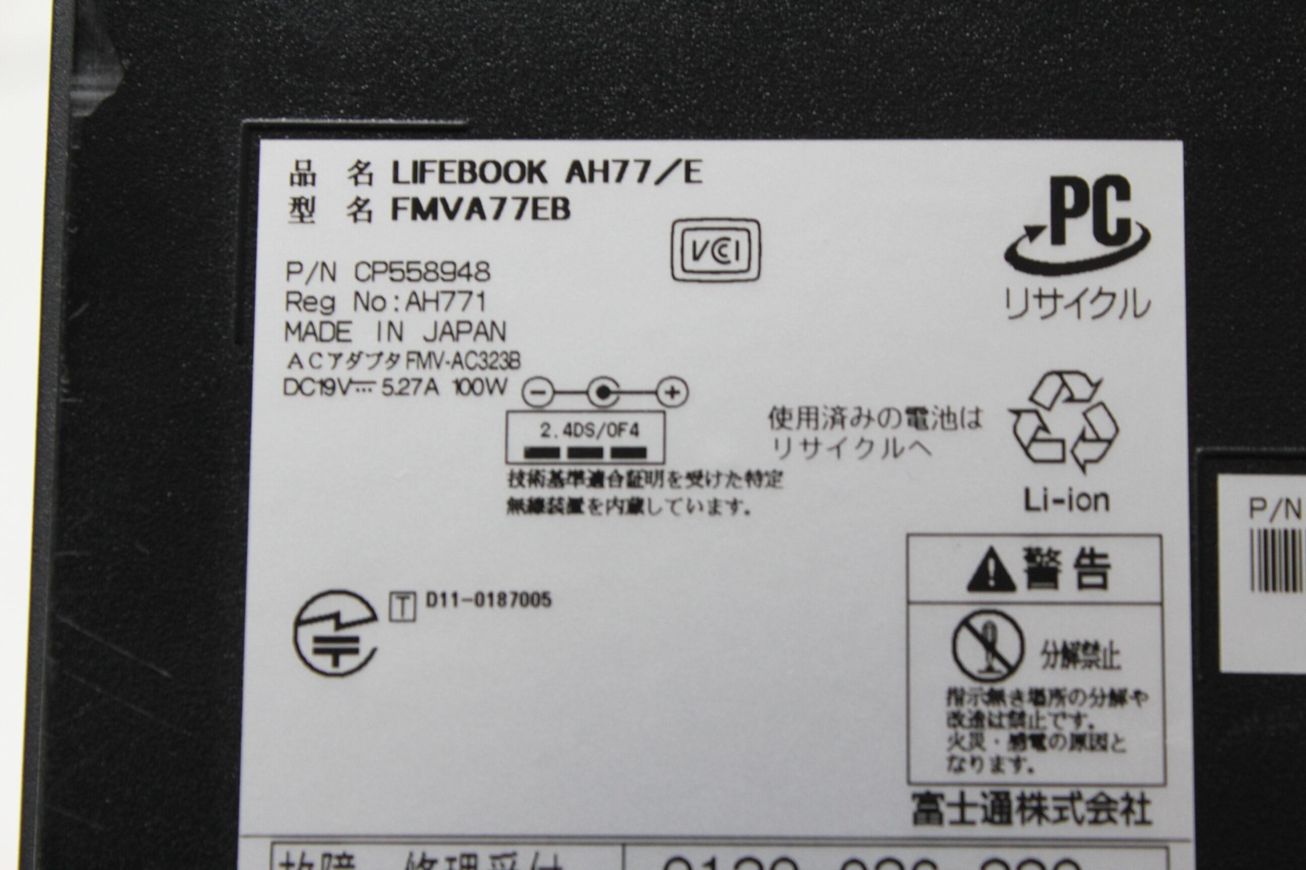 【中古ノートPC】富士通〈LIFEBOOK AH77/E〉Intel Core i7/SSD480GB/メモリ8GB ⑥