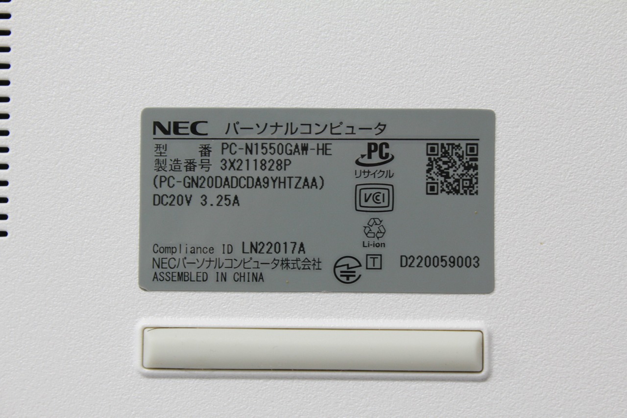 【中古ノートPC】NEC〈LAVIE N1550/GAW-HE〉Ryzen 5/SSD256GB/メモリ8GB ④