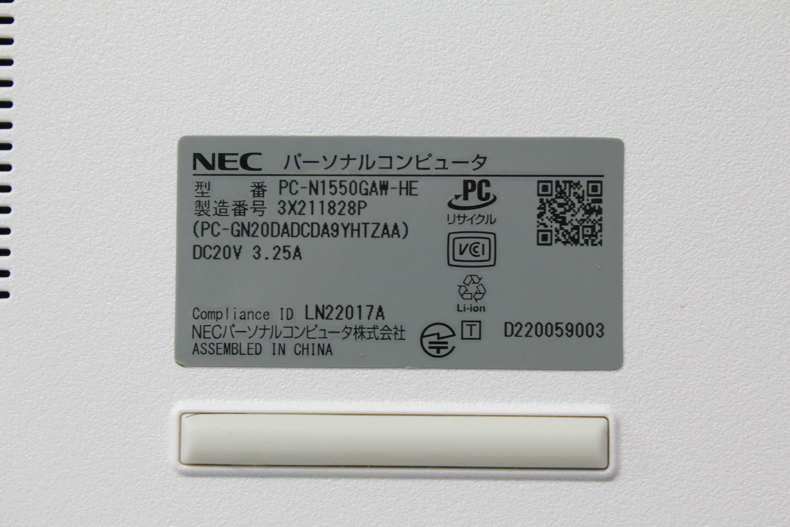・型番:PC-N1550GAW-HE