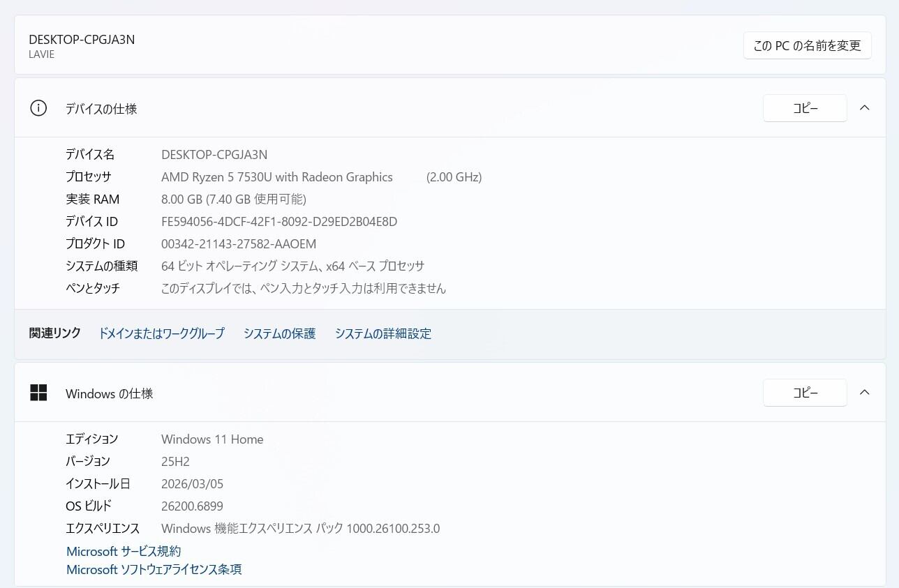 ・OS:Windows11 Home/25H2(ライセンス認証・Windows update済)