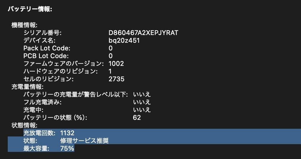 ・充放電回数:1132回