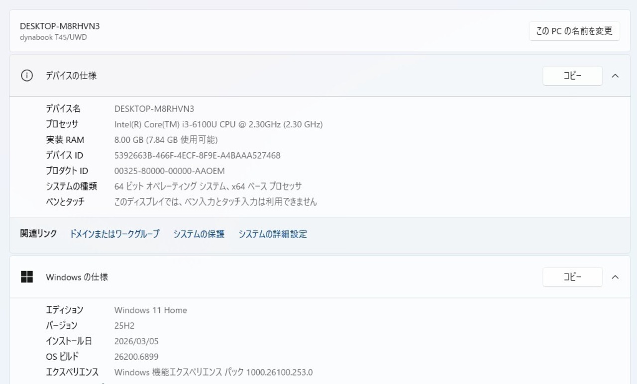 ・OS:Windows11 Home/25H2(ライセンス認証・Windows update済)